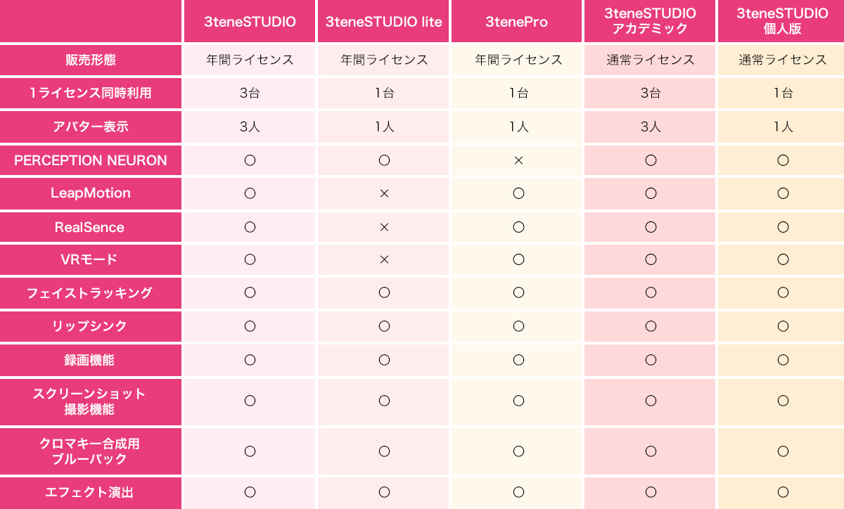 ※3tenePRO V2 から3teneSTUDIO liteへのアップグレードはございません。